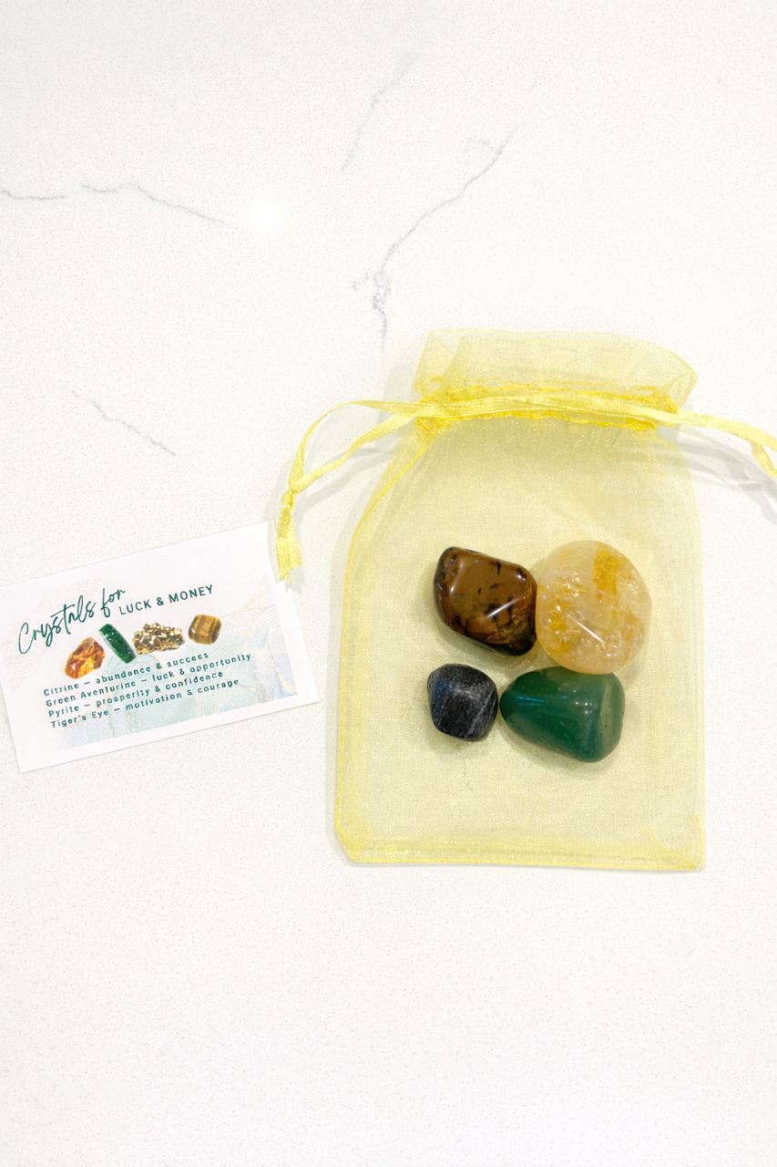 An assortment of crystals intuitively choses and "hand-scooped" to align with specific intentions and energetic themes. Bags consist of 4-5 crystals based on availability and an information card. Click "see details" to learn more about each scoop.
